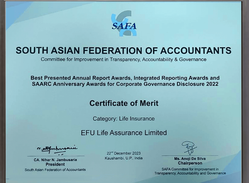 ای ایف یو لائف نے ساؤتھ ایشین فیڈریشن آف اکاؤنٹنٹس (SAFA) ایوارڈ حاصل کرلیا